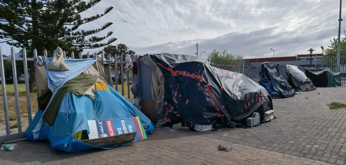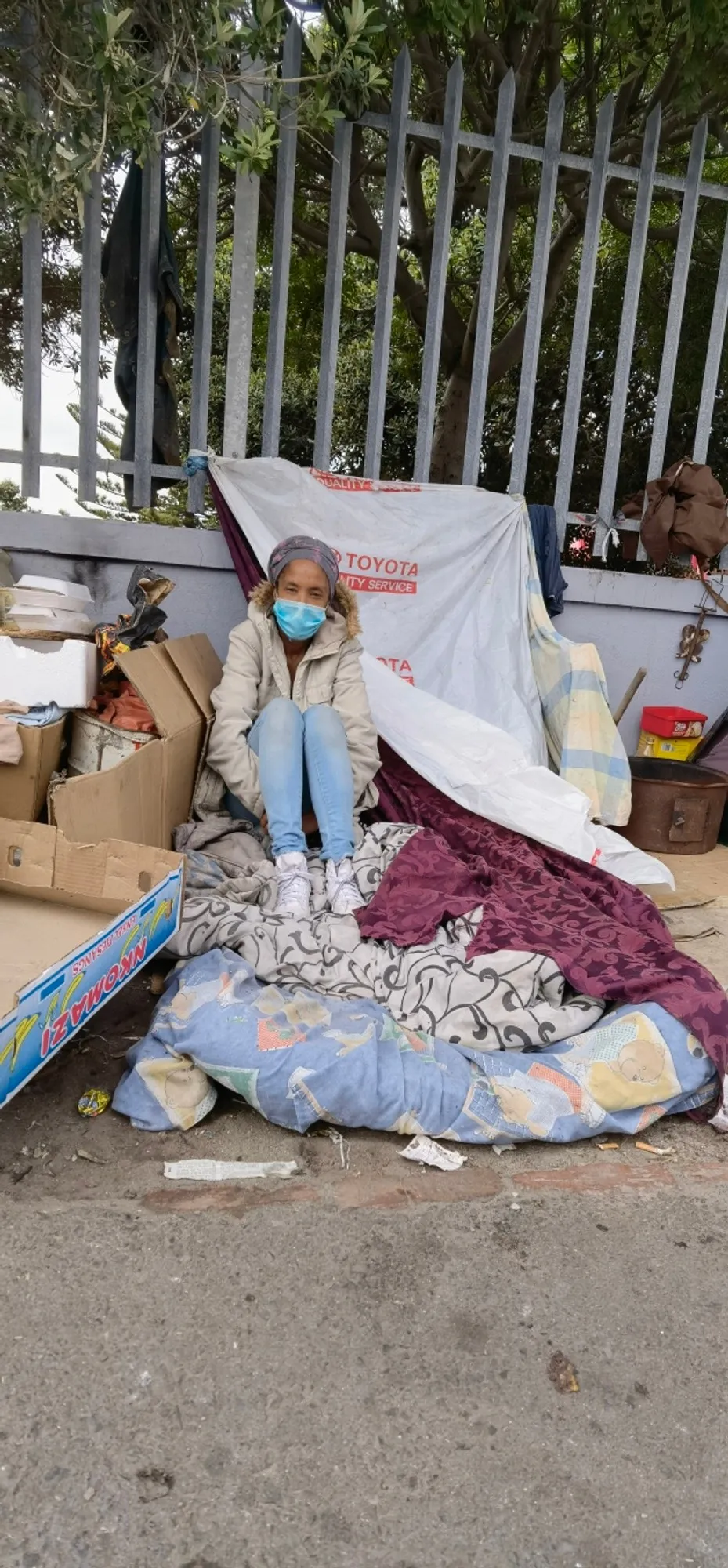 Ms Cupido, who is from Grassy Park, had a dispute with her sister whom she rented a home with but she left after the dispute and has been homeless since. She lives alongside dozens of other street people who have made their homes at the Grassy Park library with tents and other equipment.
