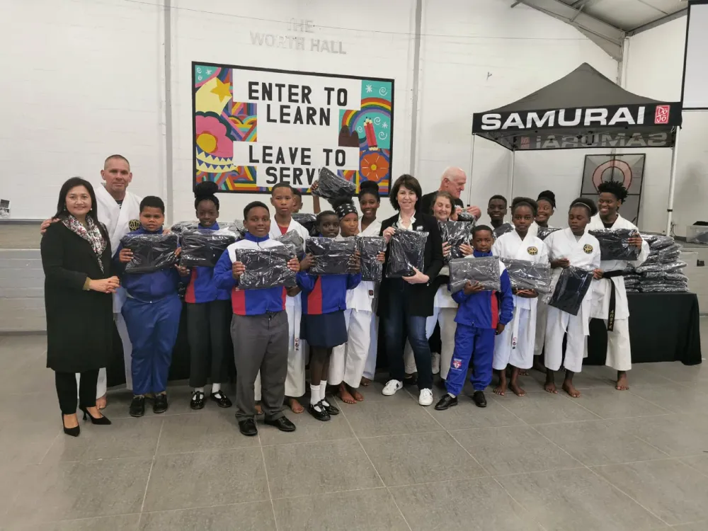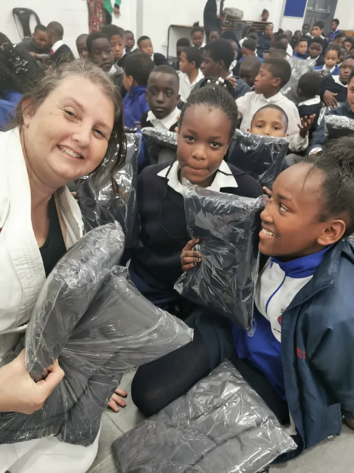 Plumstead swimmer and sensei Kim Prytz collaborated with Samurai School of Karate Claremont and Herbalife to handover 551 blankets to Capricorn Primary School pupils on Thursday September 8.