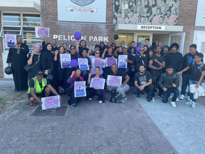 Staff, pupils, parents, and the broader Pelican Park community gathered outside Pelican Park High School, in solidarity against gender-based violence, on Friday November 21.