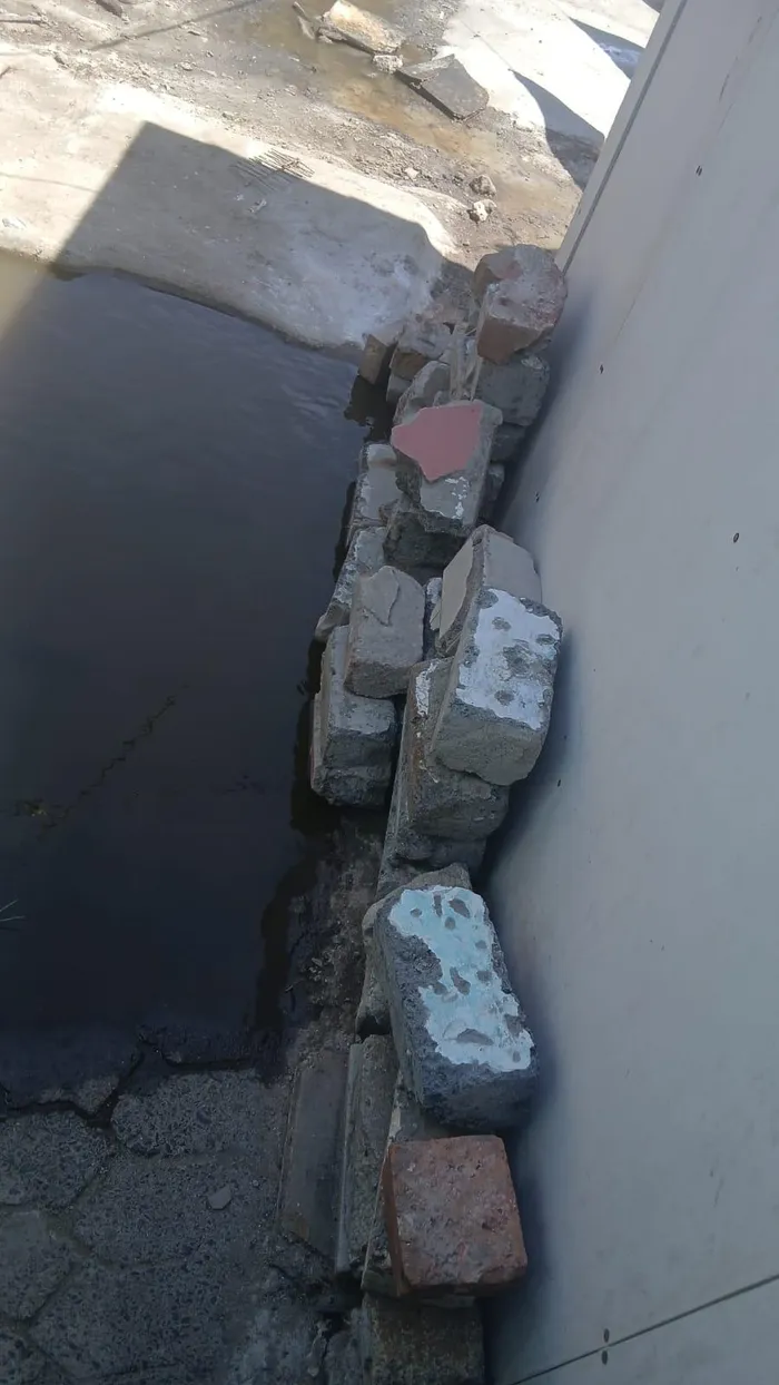 Bricks have been placed to prevent the dirty water from seeping into the house.